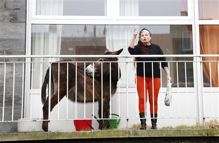 In Brussels the Belgian police have demanded that Lola, a theatrical donkey, be removed from the balcony of a cultural centre the city, after neighbors complained about her loud braying.